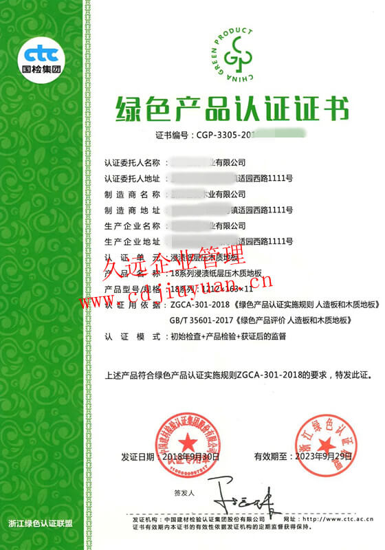 中國環境標志產品認證證書(十環認證)